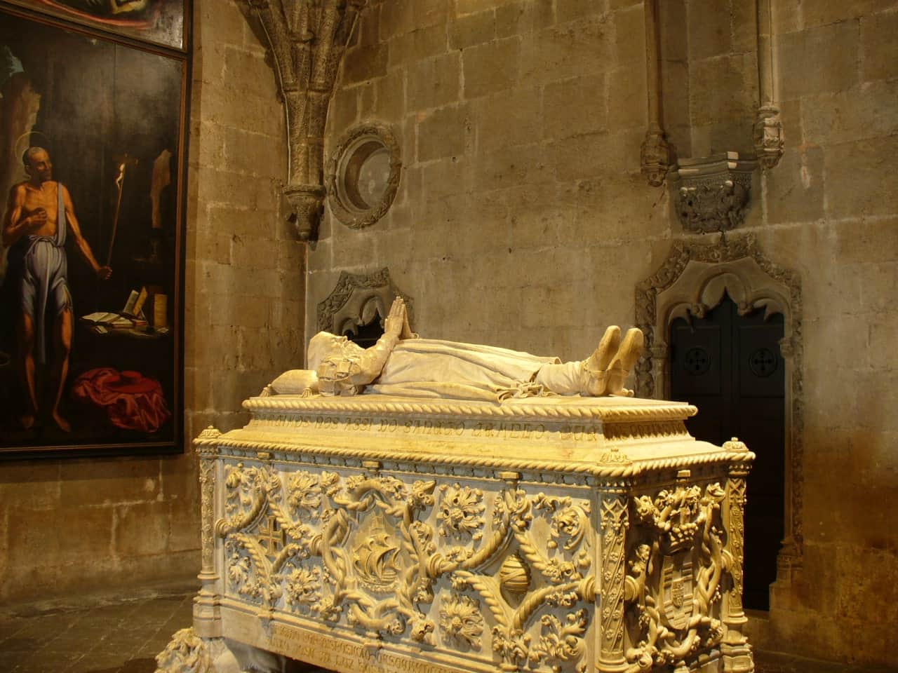 He was buried at St. Francis Church in Cochin, but later, his remains were moved to Portugal in 1539 and laid to rest at the Jerónimos Monastery in Lisbon.